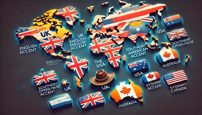 - General American : Cet accent, le plus couramment entendu dans les médias, est neutre et facile à comprendre, avec des voyelles claires et plates.